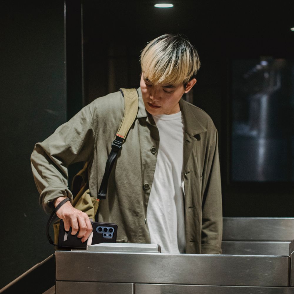 Um das Innere abzurunden, wurde ein weiches Material verwendet, das vor Kratzern schützt. Das Telefon ist auf einer Halterung aus gehärtetem Material befestigt, wodurch die Wallet "S" vollständigen Schutz und Dämpfung des Geräts bei jedem Sturz bietet.