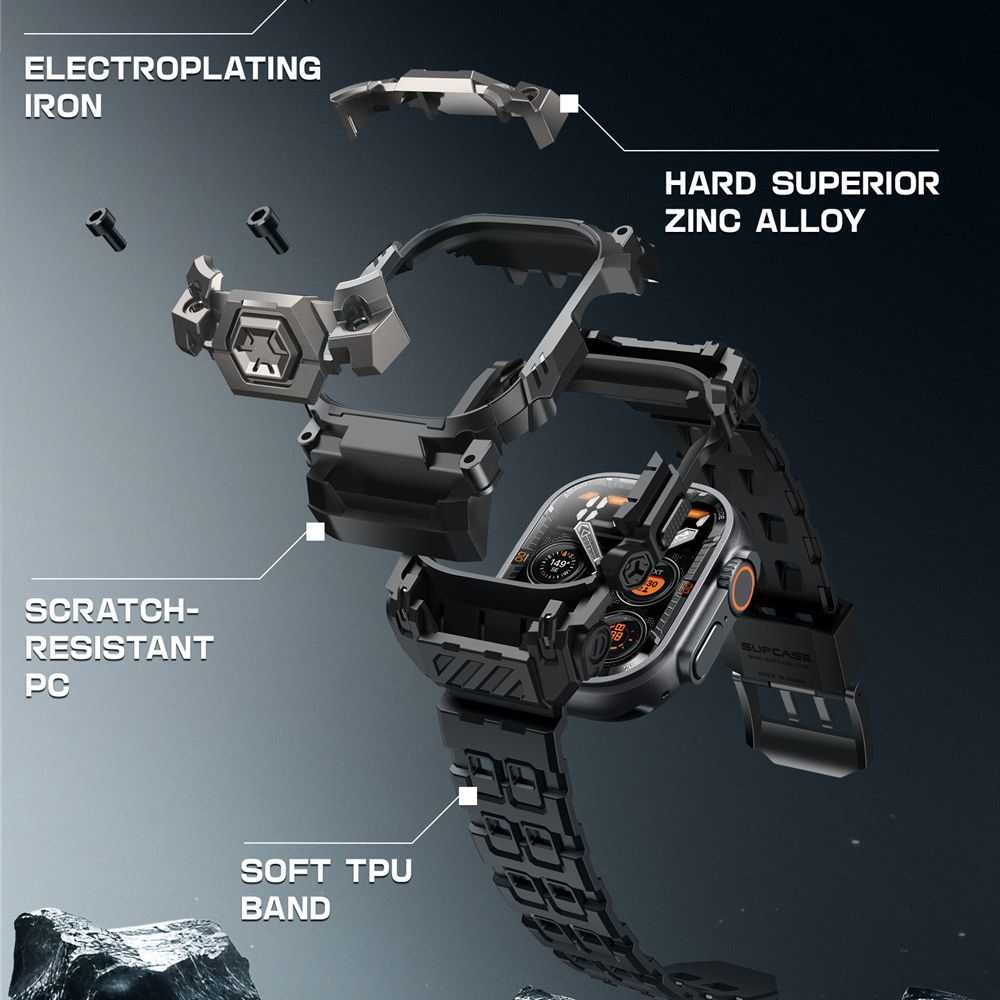 Entdecken Sie das Supcase Unicorn Beetle Ore mit Armband – die ideale Kombination aus panzerartiger Schutz, Stil und Funktionalität. Dank des militärischen Schutzes und der verwendeten robusten Materialien TPU und PC absorbiert das Gehäuse effektiv Stöße und schützt Ihre Uhr vor Beschädigungen.