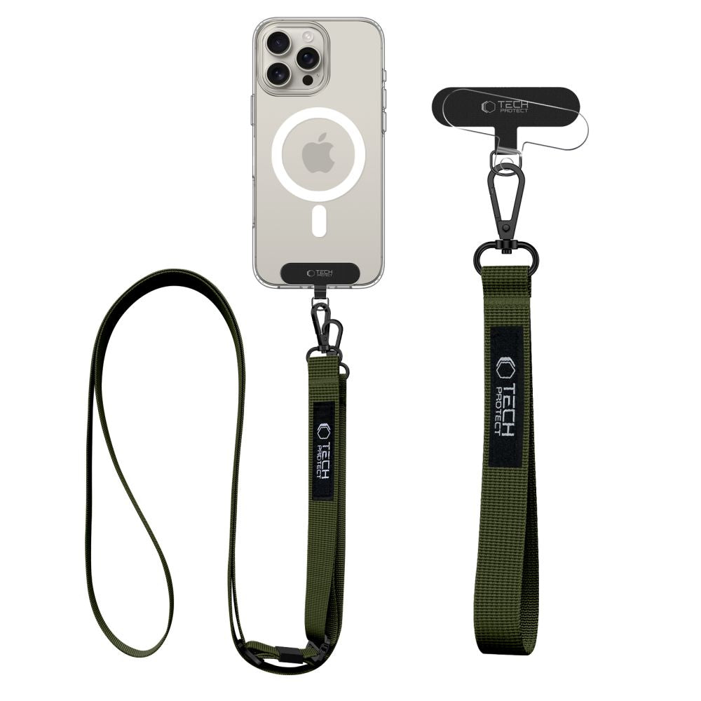 Die Tech-Protect C6S 2-in-1 Schlaufe ist ein vielseitiges Zubehör, das für das sichere Tragen des Telefons entwickelt wurde. Das Set besteht aus einer verstellbaren Nackenband und einer kürzeren Handgelenkschlaufe, beide in einem stilvollen, einheitlichen Farbdesign. Die Schlaufe hat abnehmbare Clips, die einen schnellen Wechsel zwischen den Trageoptionen ermöglichen.